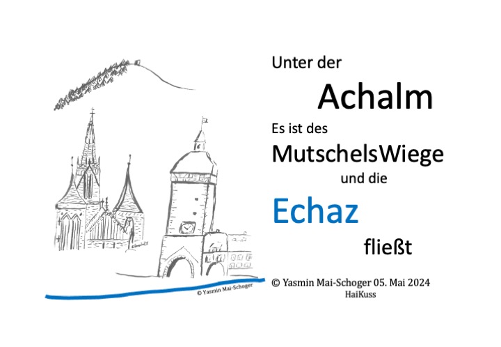 In meinen Büchern findet man allein mehr als 60 Gedichte über die Achalm und die Echaz – weitere Verse gibt es über den Neckar und über die umliegenden Wiesen und Wälder – schauen Sie doch einfach mal bei einer meiner „Achalm, Echaz & Co“ – Lesungen vorbei